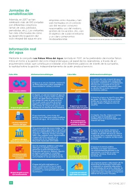 Mediante la campaña Los Falsos Mitos del Agua, lanzada en 2017, se ha pretendido desmontar falsos                      Como remate de la campaña           De esta manera, Aqualia apoya