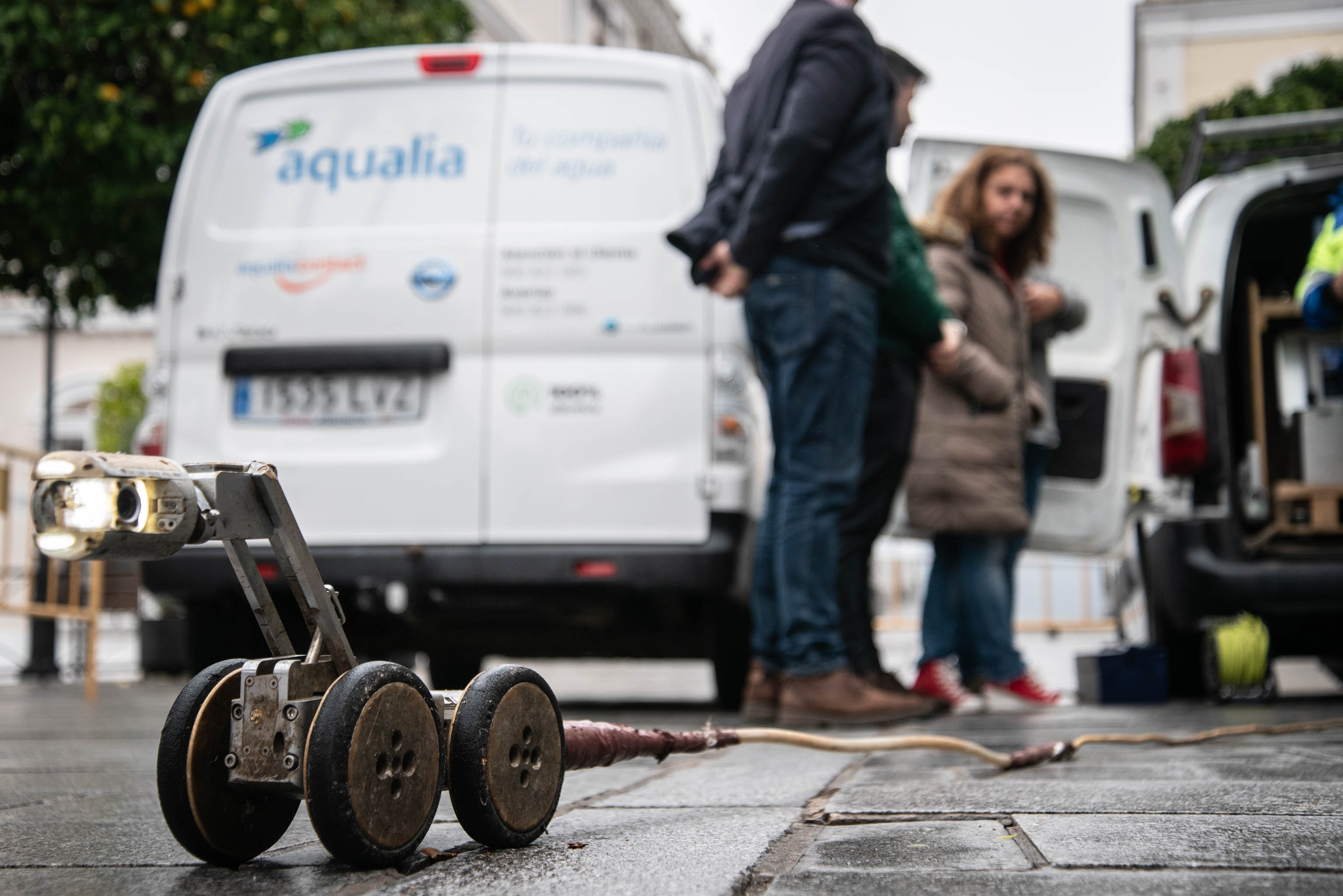 En el caso de las rejillas de los imbornales, la limpieza se realiza de manera manual. Los trabajadores de Aqualia acuden con un vehículo en el que van depositando todos los residuos extraídos de los imbornales, que después irán a parar a un vertedero. Finalmente insertan agua a presión dentro del imbornal para comprobar que el atasco ha desaparecido.